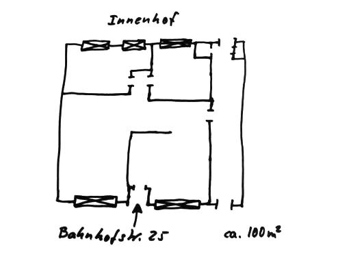 Der Projektraum hat ca. 100qm aufgeteilt in 4 unterschiedlich große Räume, Deckenhöhe 3,20m, großzügige bodentiefe Ladenfenster zur Bahnhofstrasse, professionelle Ausleuchtung.